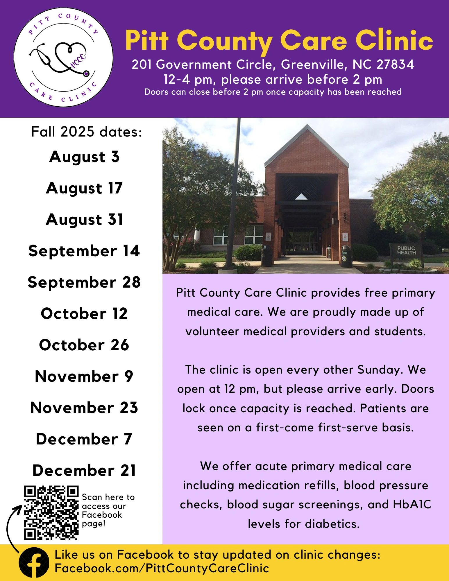 We are a free clinic made up of volunteer healthcare providers and medical students at ECU.